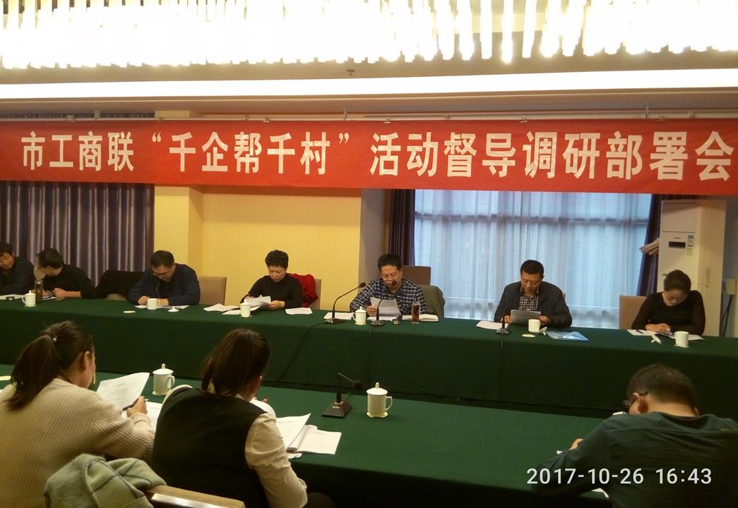 10月26日,南阳市工商联召开“千企帮千村”活动督导调研部署会,市工商联副主席魏剑理出席会议并讲话,各县区工商联分管“千企帮千村”活动的副主席和台账管理员参加会议。