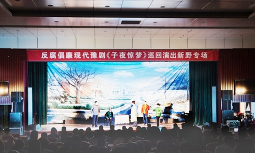 10月17日晚,新野县工商联组织县工商联系统部分干部家属观看了大型反腐倡廉现代豫剧《子夜惊梦》演出。